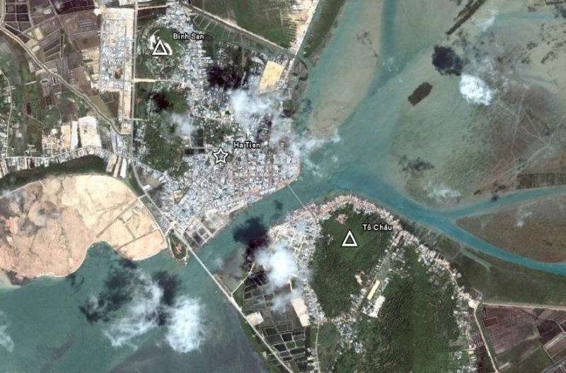 จากภาพข้างล่าง จะเห็นได้ว่าโตเจานั้นเป็นพื้นที่ฝั่งตรงข้ามแม่น้ำหน้าเมืองห่าเตียน ชื่อนี้ตรงกับชื่อจีนว่าซูโจวครับ ทัพสยามตั้งค่ายอยู่ที่นี่ และตรงนี้ก็คือที่ๆในจดหมายเหตุรายวันทัพฯบันทึกว่าพระเจ้าตากทรงออกไปตรวจการณ์วางแผนการรบด้วยพระองค์เอง