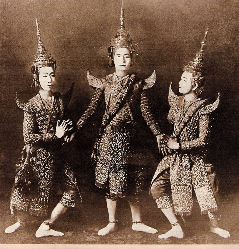 นี่เป็นภาพที่เจ้าพระยารามราฆพ (ซ้าย) พระยานัฏกานุรักษ์ (กลาง) และพระยาอนิรุทธเทวา(ขวา) ถ่ายเอาไว้ในการเล่นโขน เรียกว่าโขนบรรดาศักดิ์ มีข้อแตกต่างจากโขนธรรมดาทั่วไปคือ ผู้เล่นมียศ มีตำแหน่ง มีบรรดาศักดิ์ และจะมีพวงมาลัยคล้องตัวด้วย