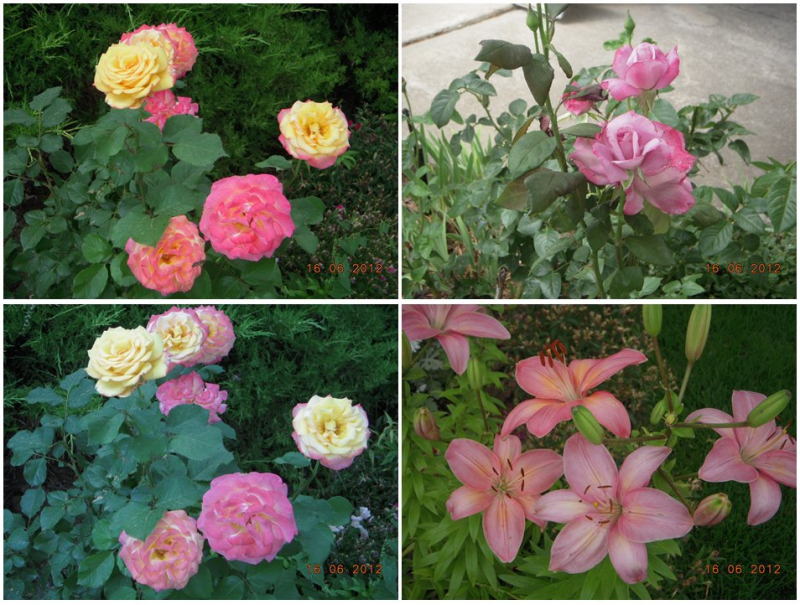 ล่างขวาคือดอกลิลี่  ปลูกที่สนามเช่นเดียวกับกุหลาบ