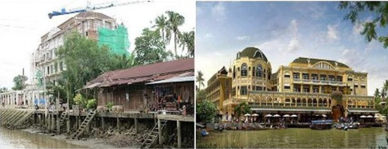 แต่เมื่อนักลงทุนมองเห็นกำไร เอาแท่งคอนกรีตมหึมาห้าดาวมาปักลงริมน้ำ    เอาตลาดริมน้ำขึ้นห้าง มันก็ไม่ต่างจากย้ายศูนย์การค้าในเมืองหลวงมาไว้ที่นี่     ขึ้นได้แห่งหนึ่งต่อมาแห่งที่สองที่สามก็ตามมา    ชาวบ้านต้องหลีกทางให้นายทุน   อัมพวาก็จะหมดสภาพท้องถิ่นดั้งเดิม   แล้วก็ล้มระเนนระนาดกันไปทั้งนายทุนและชาวบ้าน