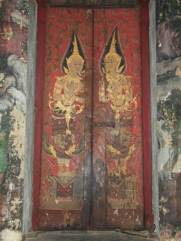 ทวารบาลบานหน้าต่างบางภาพชำรุดทรุดโทรมหลุดร่อนเกือบหมดแล้ว ความงามของทวารลาลที่นี่ส่วนนึงคือลวดลายผ้าที่สวมใส่นั้นไม่ซ้ำกันเลยถือเป็นลายครูให้ศึกษาสำหรับการเขียนภาพไทยได้เป็นอย่างดี