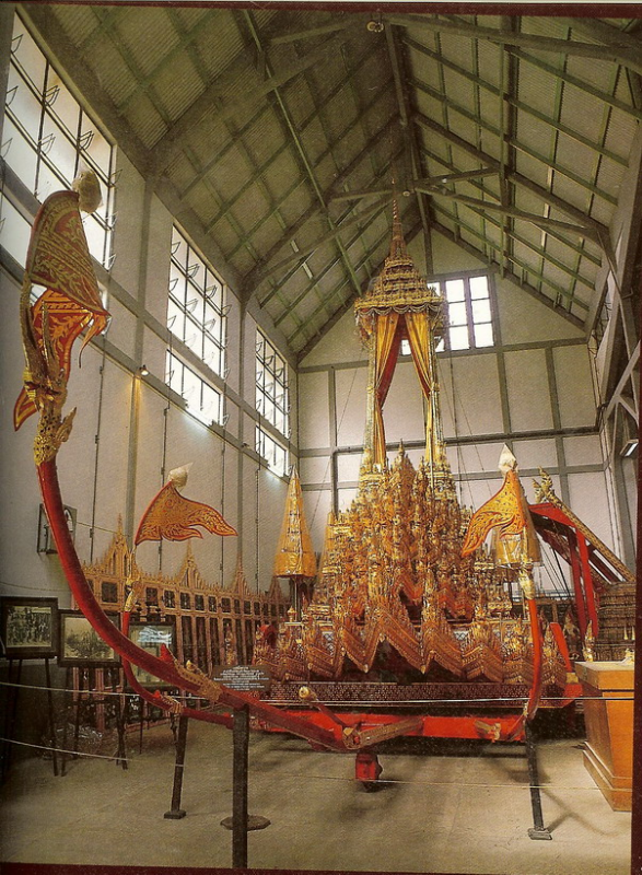 4พระมหาพิชัยราชรถ พระมหาพิชัยราชรถ ปรากฏบันทึกการสร้างในพระราชพงศาวดารว่า “...ปีเถาะ สัปตศกพระโองการรับสั่งให้ช่างทำพิชัยราชรถที่จะทรงพระโกศพระอัฐิ ๗ รถ ให้ตัดเสาพระเมรุตั้ง ทรงประดับเครื่องให้แล้วเสร็จในปีเถาะ” การสร้างราชรถครั้งนั้นก็คือการสร้างพระมหาพิชัยราชรถขึ้น เพื่อการพระบรมศพพระปฐมบรมมหาชนก ใน พ.ศ. ๒๓๓๘ โดยโปรดให้สร้างเป็นราชรถขนาดใหญ่ตามแบบพระราชประเพณี ที่เคยมีมาครั้งกรุงศรีอยุธยา คือ มีขนาดสูง ๑,๑๒๐ เซนติเมตร ยาว ๑,๕๓๐ เซนติเมตร งานพระเมรุ พ.ศ. ๒๓๓๙ ต่อมาใน พ.ศ. ๒๓๔๒ สมเด็จพระพี่นางเธอ เจ้าฟ้ากรมพระเทพสุดาวดี สิ้นพระชนม์ ก็โปรดให้อัญเชิญพระโกศทรงบนพระมหาพิชัยราชรถออกพระเมรุอีกครั้งหนึ่ง นับจากนั้นพระมหาพิชัยราชรถก็ได้ถูกกำหนดให้เป็นราชรถเฉพาะ อัญเชิญพระบรมศพพระเจ้าแผ่นดินตลอดมา