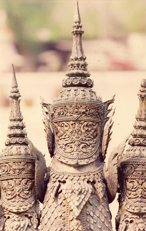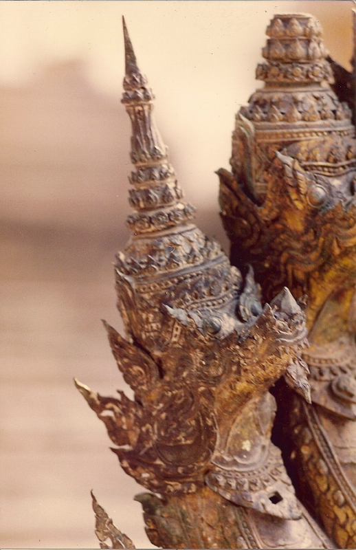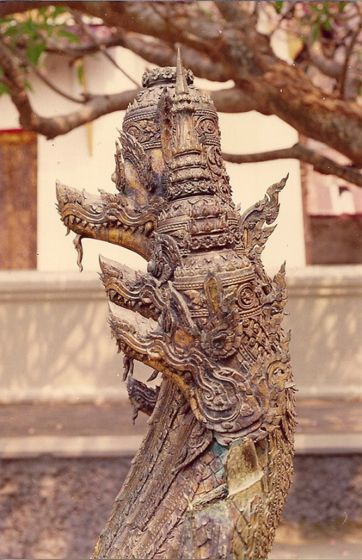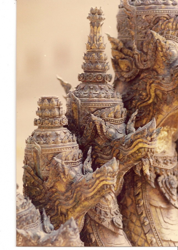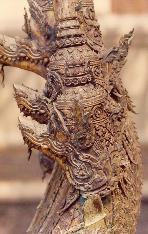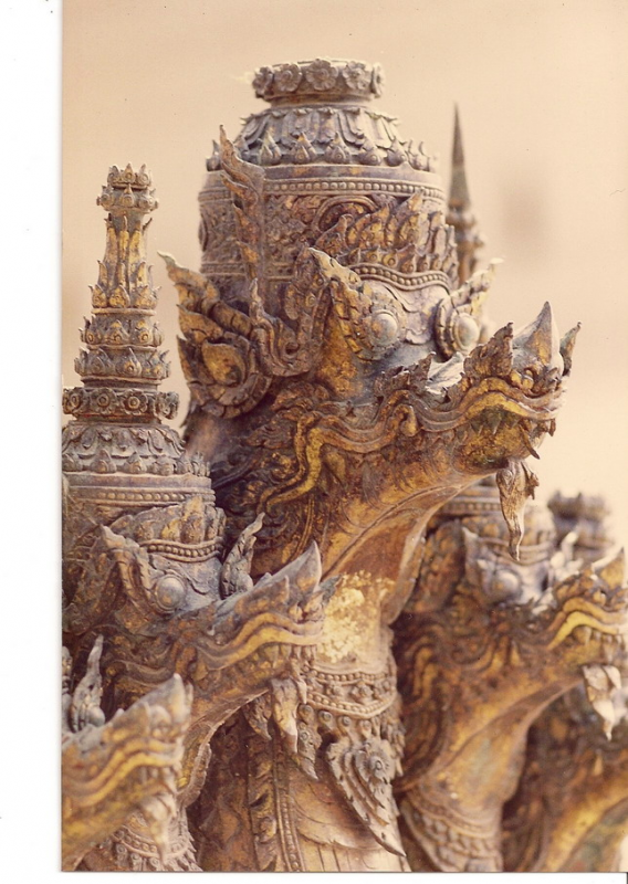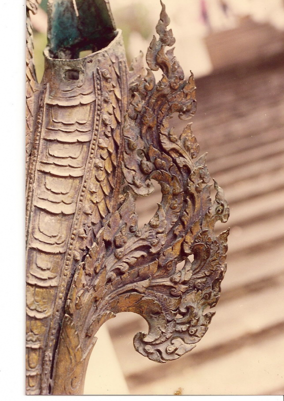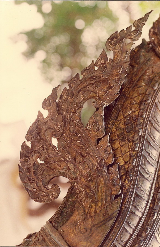 อันนี้เป็นรูปด้านหลังของนาคสำริดครับใครเคยเห็นงูเห่าแผ่แม่เบี้ยคงรู้สึกได้ถึงอารมณ์ของช่างให้ความรู้สึกเหมือนงูๆจริงๆเลย ให้ดิ้นตายเลยครับ เคยไปดูเก้าอี้แกะสลักไม้เป็นรูปพญานาคในพิพิธภัณฑสถานแห่งชาติแล้วหงอนพญานาคที่เป็นลายกนกหักไปทำให้เห็นเลยว่านี่มันงูเห่าชัดๆใครบอกว่าช่างไทยไม่รู้กายวิภาค ช่างไทยนี้ท่านรู้กายวิภาคแต่ท่านเลือกเอาความงามของรูปทรงเส้นตัดทอนให้เหลือแต่ความงามเอาความไม่งามออกไป ชมทัศนารูปต่อไปเลยครับเดี๋ยวจะหาว่าผมโม้มากไปครับ