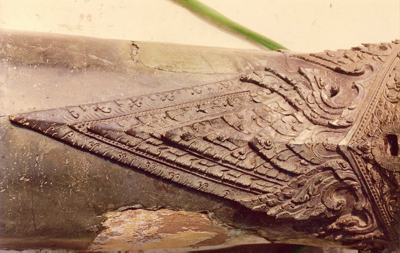 อีกด้านหนึ่ง โปรดสังเกตโครงของกนกที่ลื่นไหล ไม่เป็นทรงสามเหลี่ยมเหมือนรัตนโกสินทร์