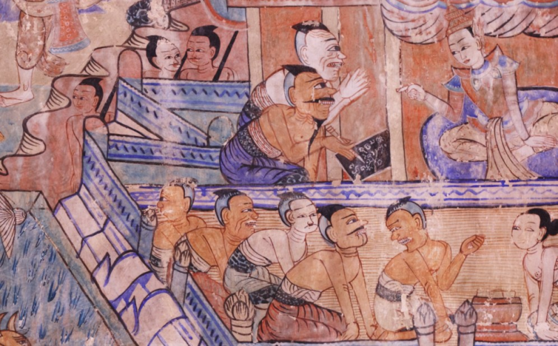 หลายท่านอาจจะได้เคยเห็นภาพเขียนฝาผนังที่โดดเด่นไม่เหมือนใครในวัดบวกครกหลวง อำเภอเมือง เชียงใหม่ มาบ้าง ผมได้พบภาพเขียนที่มีความละม้ายคล้ายกันอย่างยิ่งในวัดแห่งหนึ่งในอำเภอแม่แจ่ม อำเภอเล็กๆแต่สงบน่ารักที่ไกลออกมาจากตัวเมืองเชียงใหม่ ความเหมือนมากจนอดคิดไม่ได้ว่าเป็นช่างสกุลเดียวกัน หรืออาจจะเป็นช่างชุดเดียวกันก็ได้