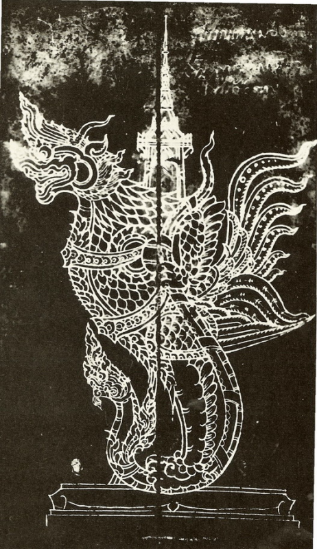 นาคาปักษิณหรือนาคปักษิณเป็นสัตว์กึ่งน้ำกึ่งบก คือเอาส่วนหัวของ "นาค" มาผสมกับส่วนตัวของ "ปักษิณ" ซึ่งแปลตามตัวว่า สัตว์มีปีก ก็คือนกนั่นเอง "นาค" มีความหมายหลายอย่าง แต่ในที่นี้หมายถึงงูใหญ่ในนิยาย ซึ่งเรามักเรียกกันว่า "พญานาค" พญานาคตามทัศนะของจินตกวีและช่างเขียนเป็นงูใหญ่ประเภทมีหงอนและเครา ตามนิยายโบราณมักจะกล่าวถึงพวกนาคมาเกี่ยวข้องกับมนุษย์เสมอ เรื่องของพญานาคมีที่มาเป็นสองทาง คือทางลัทธิพราหมณ์กับทางพุทธศาสนา พญานาคทางลัทธิพราหมณ์ออกจะถือกันว่าเป็นเทวดาแท้ ๆ เช่น พญาอนันตนาคราช และท้าววิรุฬปักษ์ (ดูหนังสือ "เทวนิยาย" โดย "ส.พลายน้อย") ว่าถึงที่อยู่ของพวกนาค ก็มีทั้งที่อยู่บนบกและอยู่ในน้ำ อย่างพญาวาสุกรี ที่อยู่เมืองบาดาลก็ไม่ใช่ในน้ำ เป็นเมืองที่อยู่ใต้โลกมนุษย์ลงไปอีกชั้นหนึ่ง นาคทางคัมภีร์พุทธศาสนามักอยู่ในโลกมนุษย์เรานี้ อยู่ในโพรงบ้าง ในถ้ำบนบกบ้าง อยู่ในน้ำบ้าง อย่างพญานาคชื่อภูริทัต ในมหานิบาตชาดก ก็อยู่บนบก แต่ตามเรื่องไทย ๆ เราว่า พญานาคอยู่ในน้ำกันมาก นาคพิภพที่ว่าอยู่ใต้ดินนั้น มีกล่าวในไตรภูมิพระร่วงว่า "แต่แผ่นดินดันเราอยู่นี้ลงไปเถิงนาคพิภพ อันชื่อว่าติรัจฉานภูมินั้น โดยลึกได้โยชน์ ๑ แล ผิจะนับด้วยวาได้ ๘๐๐ วาแล" นาคปักษิณ หัวเป็นนาค มีหงอน ส่วนท่อนหางเป็นแบบหางหงส์ เพื่อให้รับกับส่วนหัว