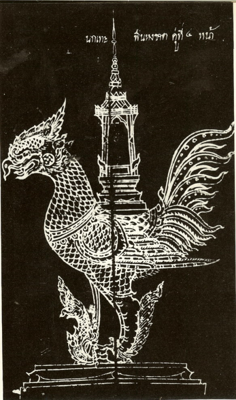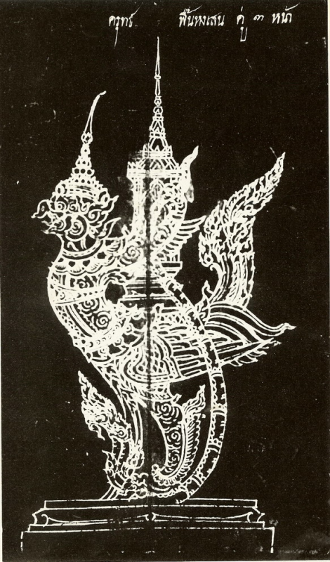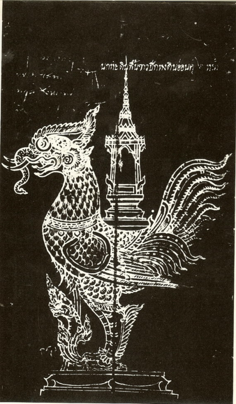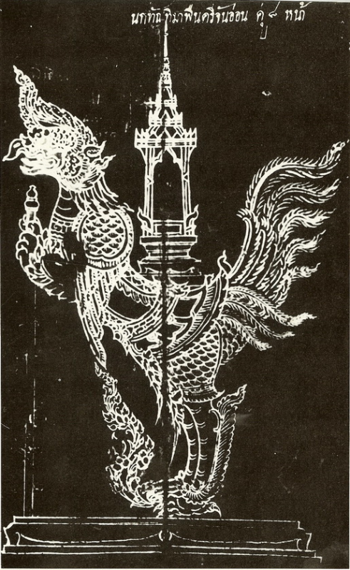 เป็นรูปจำหลักไม้อยู่ในพิพิธภัณฑสถานแห่งชาติพระนคร เป็นรูปสัตว์ปีกชนิดหนึ่งแต่ปนเปกับสัตว์อื่นหลายชนิด แต่ด้วยเพราะความจำสั้น