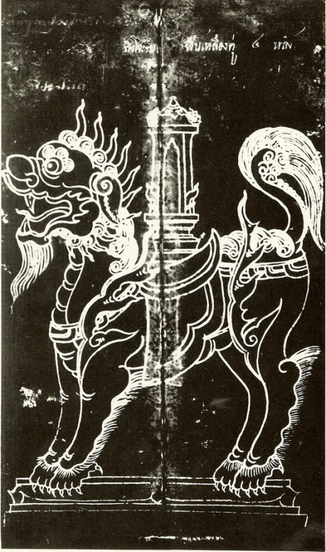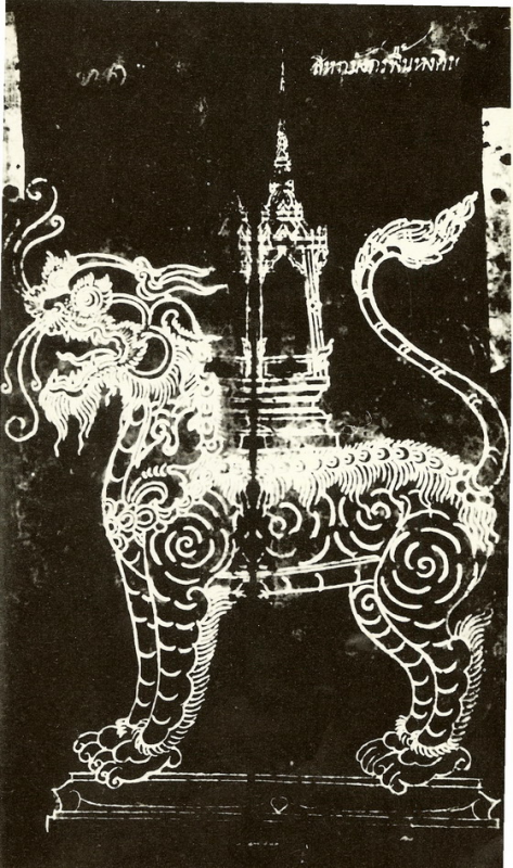 26.สิงโตจีน สิงโตจี็นเป็นสัตว์ที่ไทยเราได้มาจากประเทศจีน สิงโตจีนโดยปกติ จะมีขนปกคลุมยาวต่างจากสิงห์ชนิด อื่น ในประเทศไทย ท่านสามารถพบสิงโตจีนได้ทั่วไปตามวัดวาอาราม หรือ แม้กระทั่งศาลเจ้่าจีนเกือบทุกแห่ง ในตำรานี้ตัวเป็นสิงโต หน้าและหัวแบบสิงโตจีน ลายขนไหล่แบบลายจีนlสีตัวพื้นเหลือง