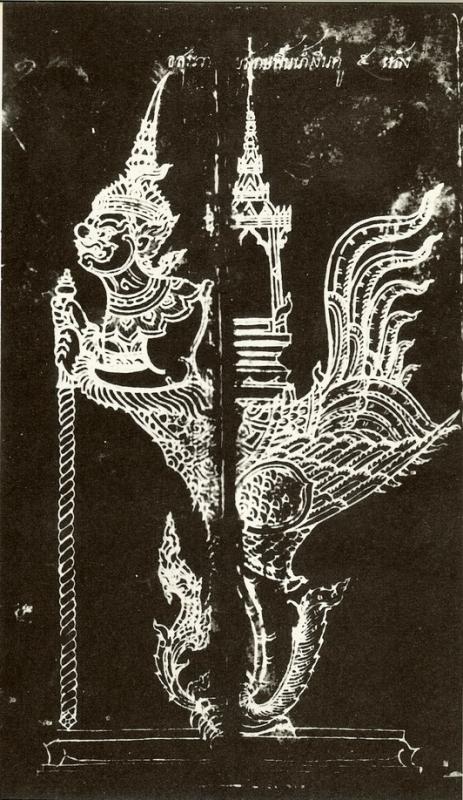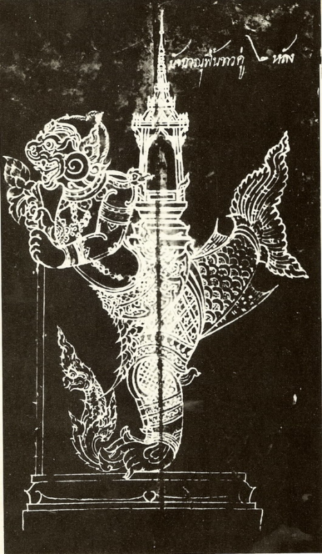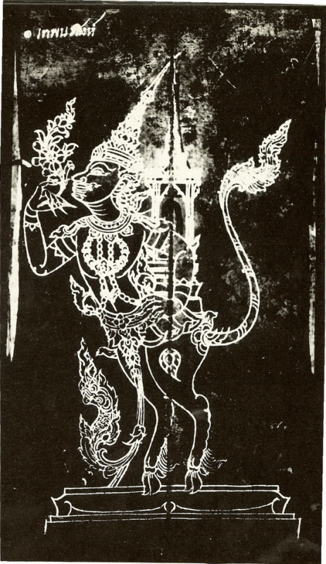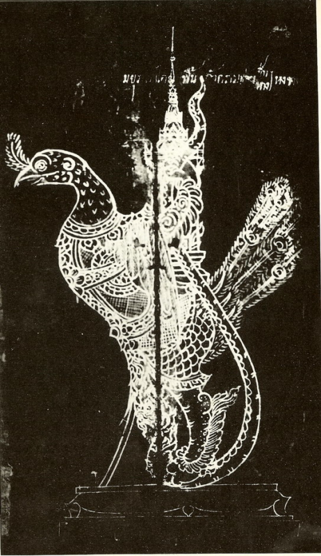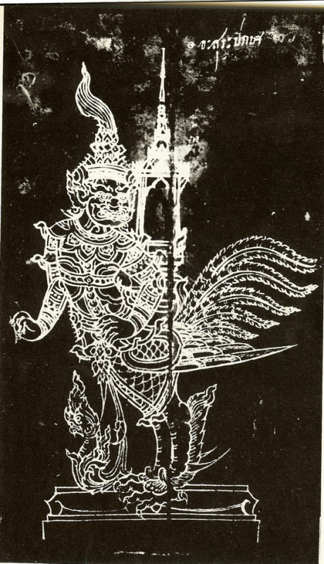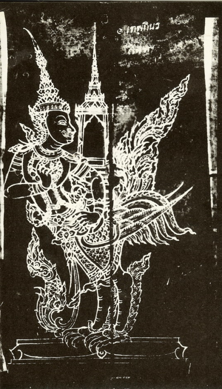 36.มยุรเวนไตย ลำตัวเป็นครุฑ หน้าและหัวเป็นนกยูง แขนและขาเป็นครุฑ หางเป็นนกยูง พื้นกายสีครามอ่อน ปีกหางสีหงชาด(แดงอ่อน)
