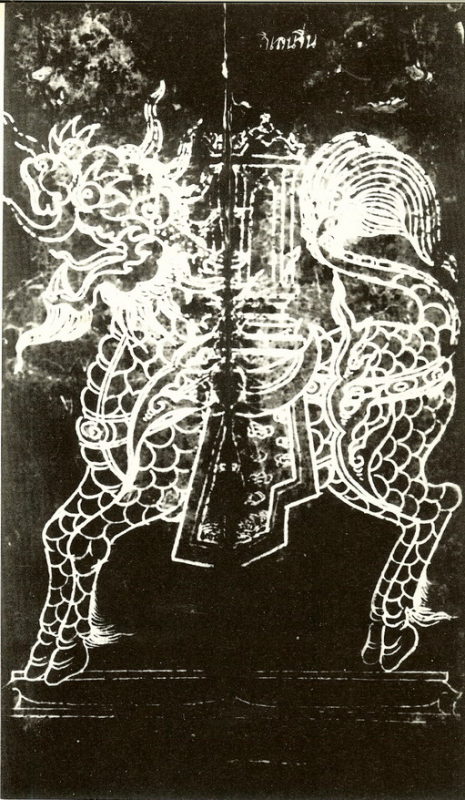 32.ไกรสรจำแลง ไกรสรจำแลงมีหัวแบบมังกร และมีร่างเป็นราชสีห์ (สิงโต) จิตรกรบางท่านเรียกไกรสรจำแลงว่า "ไกรสรมังกร" ซึ่งมีความหมาย ตรงตัวว่ามังกรสิงห์