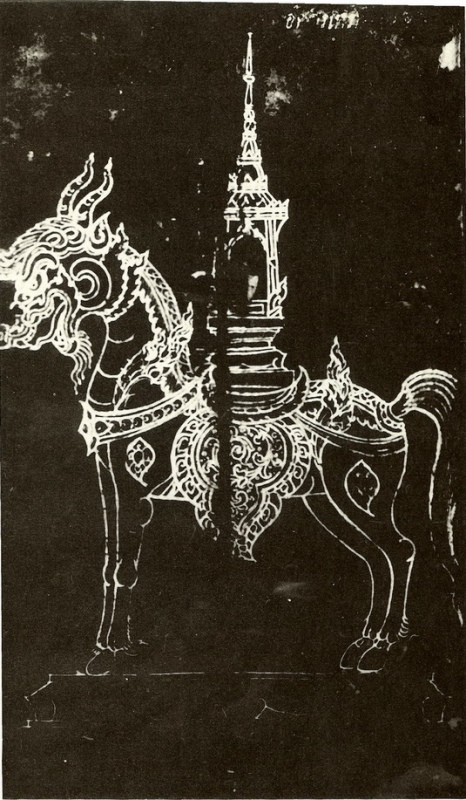 42.อัสดรเหรา อัสดรเหราเป็นสัตว์ผสมระหว่างสัตว์ตระกูลม้าและเหรา ในตำรากล่าวว่ามีผิวกายสีม่วงอ่อน สัตว์ตระกูลเหรานั้น บางทีก็วาดเหมือนจระเข้ บ้างก็วาดออกมาเหมือนมังกร