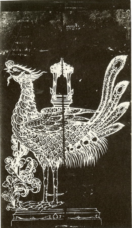 53.หงส์จีน คล้ายไก่ฟ้ามีขนคอเป็นพวง ขนหางยาว พื้นกายสีหงเสน