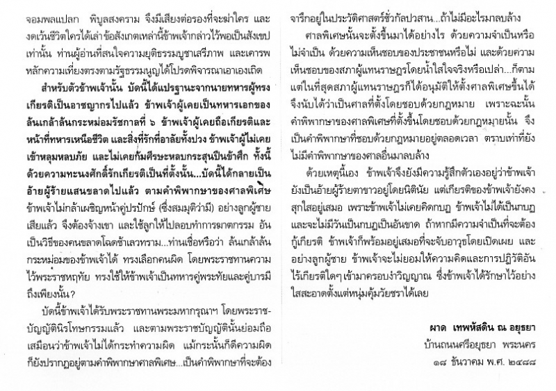 ณเณรปฏิเสธไม่รู้จักพยานทั้งหลายที่อัยการนำมาให้การปรักปรำตนด้วยเนื้อหาคอขาดบาดตาย เช่นเดียวกับจำเลยหัวคะแนนของณเณรอีกสองคนในคดีเดียวกันนี้ แต่ศาลหาได้รับฟังไม่ จึงพิพากษาให้ประหารชีวิต ร้อยโท ณเณร ตาละลักษณ์ จำเลยที่1 ส่วนนายละมัย แจ่มสมบูรณ์ จำเลยที่2 และนายมณี มติวัตร์ จำเลยที่3 ให้ลงโทษจำคุกตลอดชีวิต ตัวผู้ที่รับว่าเป็นผู้ร่วมมือและลงมือวางยาพิษหลวงพิบูลเป็นพยานครับ พยานไม่ต้องรับโทษอะไรเลยนอกจากรับรางวัลจากนายอย่างเดียว