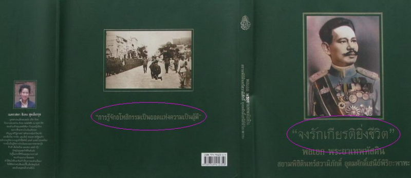 นอกจากชื่อหนังสือที่ปกหน้า จงรักเกียรติยิ่งชีวิต จะเป็นอุดมการณ์แห่งชีวิตของท่านแล้ว ที่ปกหลังของหนังสือเล่มนี้ยังทำให้เราทราบว่ามีคติธรรมสำคัญประการหนึ่งซึ่งท่านยึดถืออยู่เช่นกันคือ การรู้จักอโหสิกรรมเป็นยอดแห่งการเป็นผู้ดี