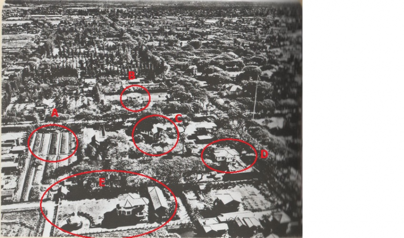 รูปที่นำมาลงคงถ่ายไว้มากกว่า 60 ปี    เพลินจิตเป็นถนนชานเมืองที่ร่มรื่นมาก  บางส่วนก็ยกร่องเหมือนสวนผัก อย่างในวงกลม A      มีบ้านใหญ่ปลูกอยู่ห่างๆกันในเนื้อที่กว้างขวาง    ตามที่ดิฉันวงกลมเอาไว้