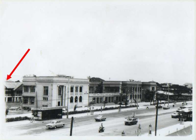 ช่วยดูหน่อยครับว่าเป็นภาพประมาณปี พ.ศ. ใด และที่ลูกศรสีแดงชี้อยู่คืออาคารอะไรครับ