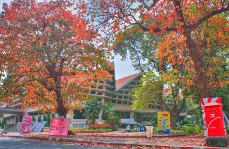 เขาคงเห็นว่าต้นนี่ออกดอกเป็นสีชมพูมั้ง เลยเอามาปลูกหน้ามหาวิทยาลัย