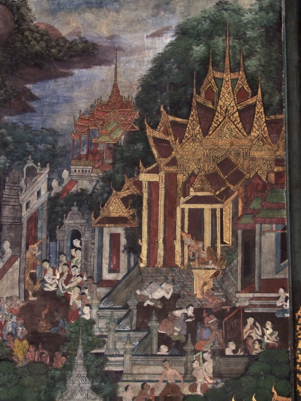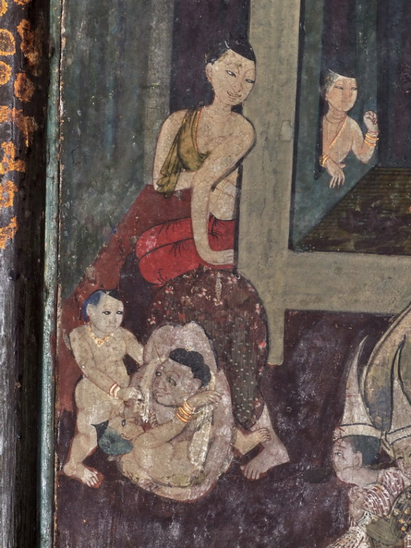 ภาพพระราชวังและรั้วกำแพงสวยจริง ๆ ยิ่งเห็นแม่ลูกอ่อนให้นมลูก อยู่หน้าประตูถ้วย ศิลปะแบบรัชกาลที่ ๓ แล้วดูไม่เบื่อเลยครับ