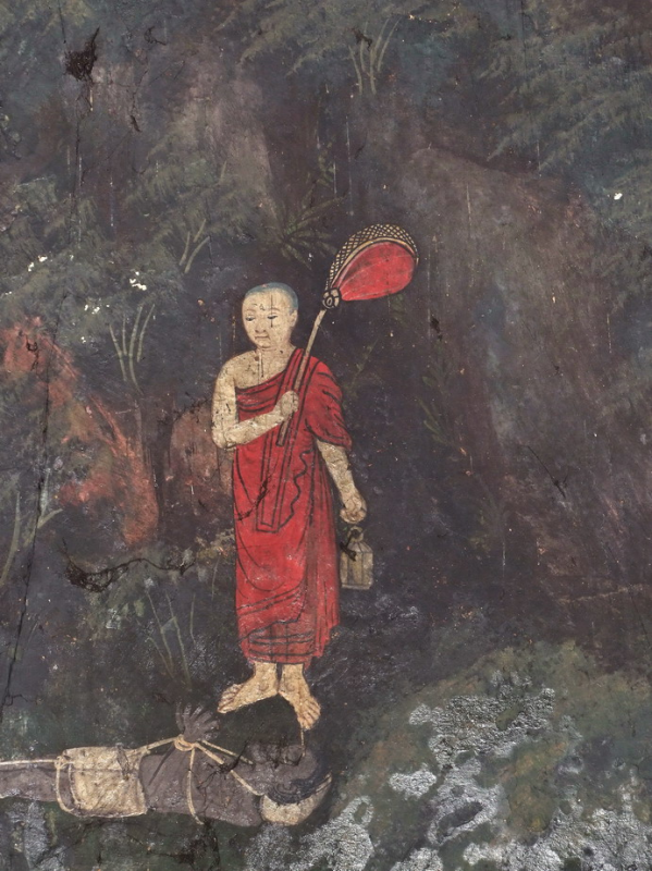 วันนี้ได้แวะไปวัดวัดหนึ่งซึ่งไม่ได้ไปมานานกว่า26ปีมาแล้ว เคยได้เข้าไปถ่ายจิตรกรรมฝาผนังที่วัดนี้ด้วยกล้องฟิล์มเมื่อ26มาแล้ว ปัจจุบันจิตรกรรมฝาผนังวัดนี้ยังหลงเหลือให้ชมอีกมากเกือบ100เปอร์เซ็นต์ เสียดายที่ว่าเมื่อครั้งที่เข้าไปถ่ายเมื่อ20กว่าปีก่อนนั้นทางวัดได้ปล่อยให้มีการไปวาดแต่งเติมโดยไม่ทราบว่าเป็นทีมงานช่างจากที่ไหนโดยทางวัดก็คงจะรู้เท่าไม่ถึงการเมื่อครั้งนั้นข้าพเจ้าจึงถ่ายเฉพาะบางภาพที่เป็นฝีมือเดิมมาไม่มากนักตามกำลังทรัพย์ในสมัยนั้น เมื่อเข้าไปในครั้งนี้พบว่าทางพระอุโบสถที่ตั้งของจิตรกรรมกำลังตั้งห้างเพื่อบูรณะภายนอกพระอุโบสถ ส่วนในพระอุโบสถก็เปิดให้เข้าได้สะดวกไม่มีคนเฝ้าไม่มีคนมาวุ่นวาย จึงได้ทำการสำรวจจิตรกรรม ให้รู้สึกมีความปิติว่าจิตรกรรมยังอยูในสภาพเดิมเหมือนเมื่อครั้ง20กว่าปีก่อน ส่วนที่เป็นฝีมือเดิมยังเหลืออยู่มาก เสียดายที่ว่าไอ้ความที่ไม่ได้เตรียมตัวมาก่อน คิดว่ากล้องชาร์ตแบตไว้นานหลายวันแล้วไม่ได้ใช้ประจุไฟยังคงอยู่ปรากฎว่าถ่ายไม่ทันไรแบตหมดให้รู้สึกเจ็บใจ แต่ยังไงก็กดไปร่วม100รูปพอเอามาอวดได้ แต่เพราะกระทู้ของชมรมเดียวนี้สมาชิกชมรมไม่มีคนเข้ามาดูมาตอบเลย ขนาดวันนี้โทรไปหาน้องยุทธนาที่ชวนพี่กินข้าวก็ปิดเครื่องซะนี่ ดังนั้นกระทู้นี้จึงขอชิมลางตั้งเป็นคำถามถามผู้เข้ามาชมที่สนใจดีกว่าว่าภาพที่นำมาให้ท่านชมนี้อยูที่วัดอะไรใครรู้บ้าง
