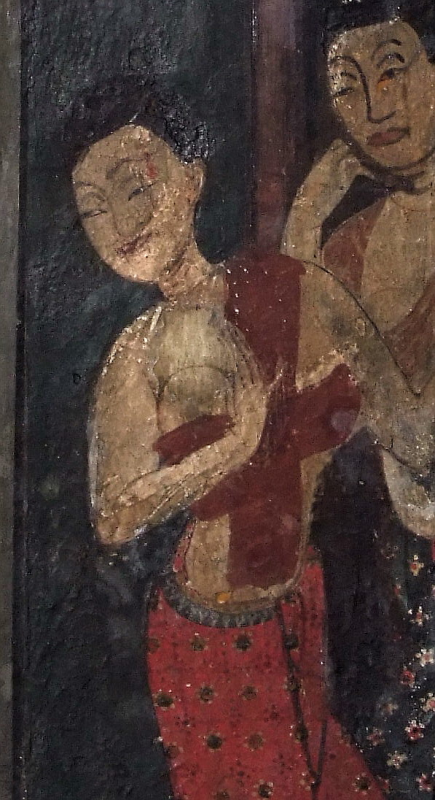 ผมสงสัยเรื่องการแต่งกายของสตรีไทยบางภาพ บางภาพก็นุ่งสไบเฉียงไหล่ข้างเดียว บางภาพก็ทำคล้ายมีผ้ามาคลุมแค่ไหล่อีกด้าน (วงกลม) ยิ่งจิตรกรรมฝาผนังที่วัดคงคาราม ยิ่งเห็นชัด จึงอยากรู้ว่าเขานุ่งกันอย่างไรนี่