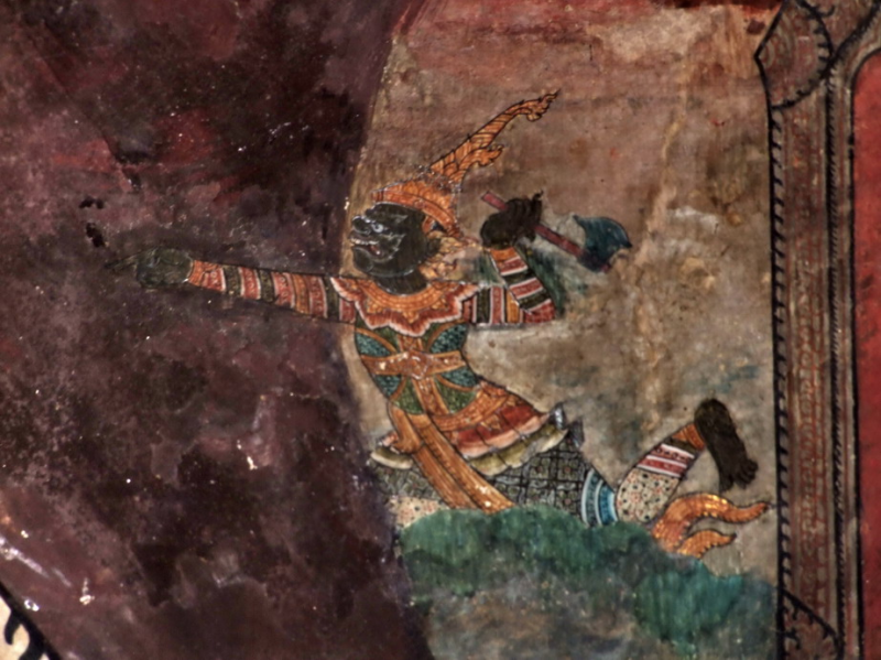 ภาพท้าวปิลยักษ์กำลังน้าวศร ช่างเป็นท่าที่งดงามนัก เสียดายที่พระพักตร์โดนซ่อมซะเละอีกตามเคย