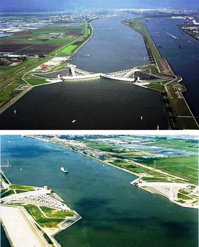 ดัชท์เป็นผู้คิดต้นแบบของประตูเช่นนี้ และอังกฤษเอาไปทำที่ปากแม่น้ำเทมส์ เพื่อป้องกันลอนดอน จากน้ำท่วมและ storm surge
