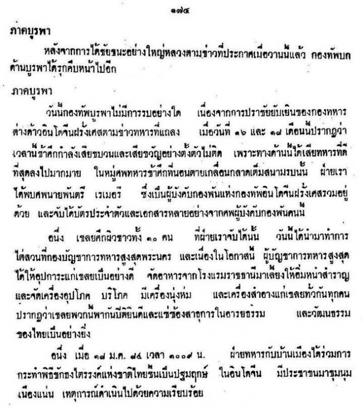 ใครก็ตามที่เขียนข่าวแถลงให้กองบัญชาการทหารสูงสุด น่าจะผ่านวิชาการเขียนระดับสูงและวิชาจิตวิทยามาแล้ว เพราะเขียนได้มีสีสัน ส่งเสริมขวัญกำลังใจของทหารกับประชาชนได้เยี่ยม รู้วิธีเขียนแบ่งข่าวได้ออกเป็น 2 ส่วน - รายงานข้อเท็จจริง (ประโยคสีดำ) -ไม่ลืมบวกกับคำขยายที่เกริกไกรเข้าไปด้วย เพื่อมีผลต่อความรู้สึกของประชาชน มากกว่ารายงานข่าวอย่างธรรมดา (ประโยคสีแดง) - (ค.ห. ๑๒๑) วันนี้เป็นวันที่กองพลพระนครทำการรบ มีชัยอย่างใหญ่หลวง - (ค.ห. ๑๒๑) ตีข้าศึกแตกกระจัดกระจายล้มตายไปเป็นอันมาก