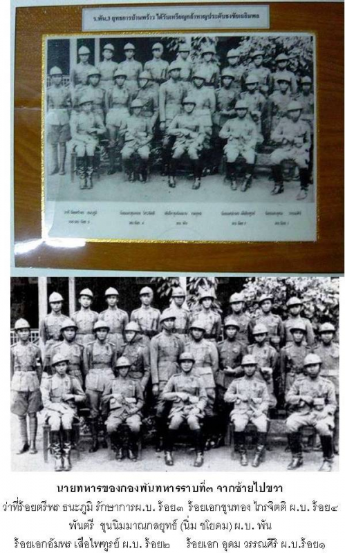 ข้างล่างที่ผมเอามาให้ดูชัดๆนั้น รูปบนที่มีกรอบท่านติดไว้ในห้องของท่าน ผมขออนุญาตถ่ายมาแต่แสงไม่พอพร่าไปหน่อยเลยต้องคัดรูปจากเน็ตมาเสริม เสธฯพรปฏิเสธจะที่รับภาพ”ละเลงเลือด”ซึ่งผมอัดขยายไปให้ แม้ท่านเองเพิ่งจะได้เห็น กล่าวว่าท่านมีภาพนี้ภาพเดียวพอแล้ว ท่านนั่งใกล้กับ ร้อยเอกขุนทอง ไกรจิตติ ผ.บ. ร้อย๔ ผู้แต่แรกก็เข้าใจว่าเป็นท่านขุนอะไรสักอย่าง กว่าจะมีคนบอกว่าขุนทองเป็นชื่อที่คนยืมนกมาใช้ ไม่ใช่บรรดาศักด์ คนนั่งกลางคือพันตรี ขุนนิมมาณกลยุทธ์ (นิ่ม ชโยดม) ผ.บ. พัน ถัดไปร้อยเอกอัมพร เสือไพฑูรย์ ผ.บ. ร้อย๒ คนดังอีกคนหนึ่งที่เป็นผู้สั่งยิงกระสุนนัดแรกและคุมหมวดตามไปยึดธงไชยเฉลิมพลของข้าศึกได้ คนสุดท้ายที่นั่งอยู่คือร้อยเอก อุดม วรรณศิริ ผ.บ.ร้อย๑ ส่วนข้างหลังเป็นพวกนายดาบ ท่านรู้จักคนเดียวคือนายดาบชิต ลูกน้องผู้ช่วยคุมทหารในกองร้อย “..อายุมากแล้ว ผมก็ให้ความเคารพท่าน”