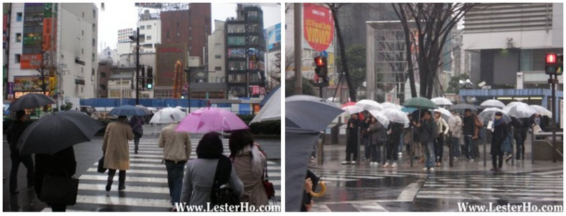 ต่อไปอีกนิดครับ ในญี่ปุ่นนั้น เมื่อเกิดฝนตก (ซึ่งจะไม่ใช่ตกจั้กๆแบบบ้านเรา) เราจะเห็นผู้หญิงญี่ปุ่นกระทำอยู่ 2 ลักษณะเมื่อต้องเิดินผ่าฝน คือ เอากระเป๋าถือยกเหนือหัวเพื่อบังฝน กับเอากระเป๋าถือกอดไว้ที่หน้าอก พอจะทราบเหตุผลใหมครับว่าทำไมจึงเป็นเช่นนั้น