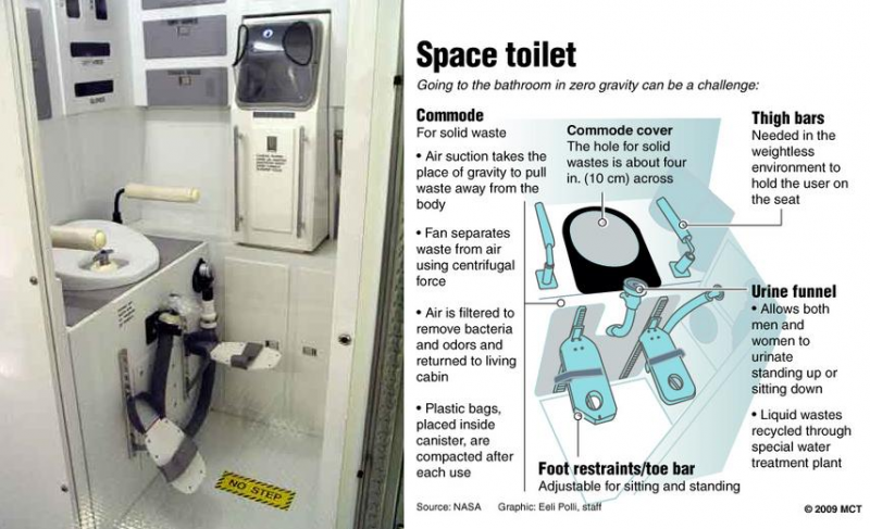 ลองนึกดูถ้าต้องเข้าห้องสุขาในยานอวกาศหรือสถานีอวกาศที่อยู่ในสภาพไร้น้ำหนัก จะลำบากยากเย็นขนาดไหน