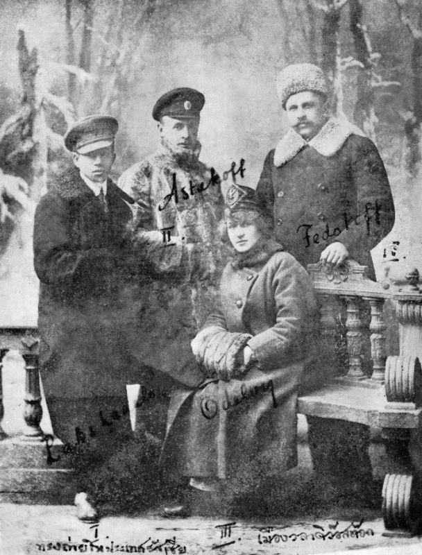 ขอขอบคุณทุกๆท่านมากๆค่ะ ดีใจที่ตอบยาวค่ะ ได้ความรู้มากมาย อยากทราบว่ารายละเอียดอย่างนี้บันทึกไว้ที่ไหนคะ ไม่ได้เป็นนักประวัติศาสตร์ แต่ชอบอ่านค่ะ ท่านกล่าวถึง ม.จ. ลักษณเลิศ ชยางกูร ด้วย เลยขอส่งถาพท่านที่ฉายที่รัสเซียมาให้ดูด้วยค่ะ  ยิ้มกว้างๆ  หากท่านมีรายละเอียดเกี่ยวกับ ม.จ. ลักษณเลิศ  ก็จะขอบคุณมากค่ะ