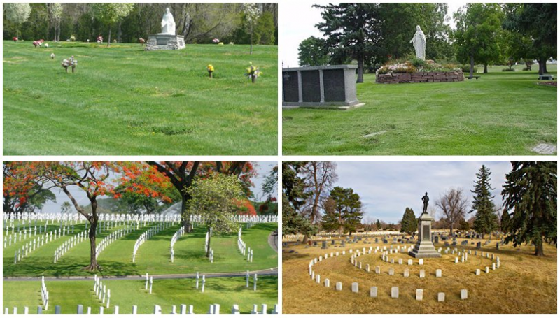 ลองมีรสนิยมประสาทแข็งแบบนี้ สุสานในรัฐทางตะวันตกของอเมริกาเห็นทีจะไม่อยู่ในสายตาคุณประกอบละค่ะ สุสานในเมืองที่อยู่ ขับรถผ่านไปหลายครั้ง ตอนแรกนึกว่าเป็นสวนสาธารณะ เพราะหน้าตามันเป็นสนามหญ้าเขียวสดกว้างขวาง มีดอกไม้สีสวยบนพื้นหญ้า มองเผินๆนึกว่ากอดอกไม้เขาปลูกไว้ ต้องจ้องมองจริงๆถึงเห็นว่าเป็นดอกไม้ที่ญาติเอามาปักไว้บนหลุมที่มีแผ่นหินเรียบวางบนพื้น