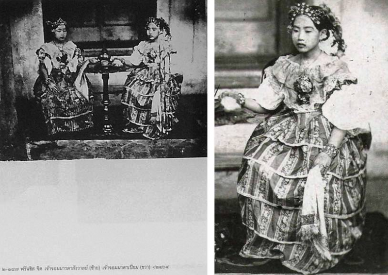 ฟรันซิส จิต เจ้าจอมมารดาในรัชกาลที่๔ ในเครื่องแต่งกายตะวันตก <๒๔๐๔ เจ้าจอมมารดาสังวาลย์ (ซ้าย) เจ้าจอมมารดาเปี่ยม(ขวา)