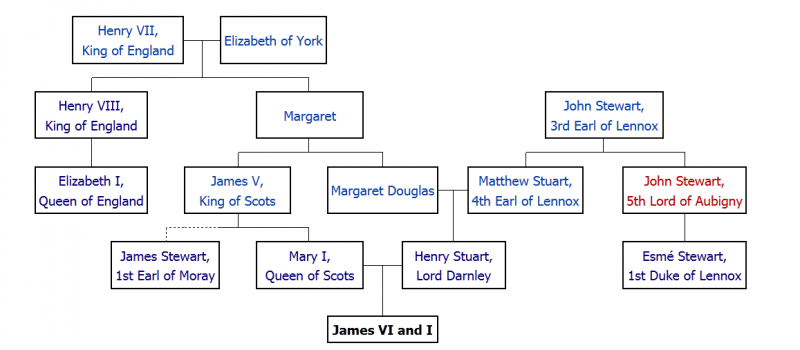 ภาพสาแหรกของเจมส์ที่ 1 แห่งอังกฤษและ 6 แห่งสก๊อตแลนด์ ตัดมาจาก wikipedia ครับ
