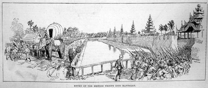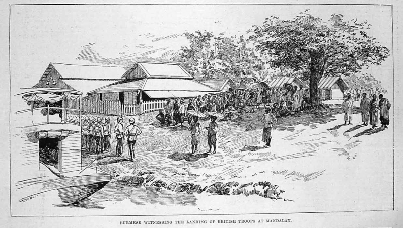 ๑๐โมงเช้า กองเรืออังกฤษก็มาถึงฝั่งแม่น้ำหน้าเมืองมัณฑเลย์แต่ทหารยังคงเตรียมพร้อมอยู่ในเรือ ชาวบ้านที่อยากรู้อยากเห็นก็พากันมาไทยมุงอย่างเฉยเมยเหมือนดูเขาเล่นหนังเล่นละครกัน ใครจะไปใครจะอยู่กูก็ไม่เกี่ยว  ก่อนหน้านี้มีพระราชโองการมาป่าวประกาศไม่ให้ผู้ใดต่อต้านขัดขืนกองทัพอังกฤษ ฉะนั้นฉากบู๊จึงไม่น่าจะเกิดขึ้น