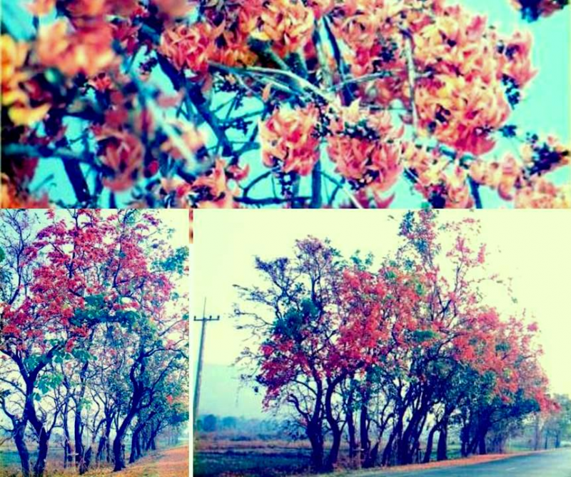 เวลาเปลี่ยน การณ์ก็เปลี่ยน กระแสการพัฒนาขยายถนนหรือความเจริญย่อมเข้ามาสู่ชุมชน ทั้งนี้ต้นทองกวาวเหล่านี้เติบโตก่อนถนน หรือ หลังถนนก็ตามที แต่เอาเป็นว่า เมื่อได้มีการตัดถนนปักเสาไฟฟ้าแรงสูงแล้วไซร้ ย่อมหมายว่า ทองกวาวเหล่านี้ยืนต้นอยู่ในเขตถนนทางหลวงแล้ว