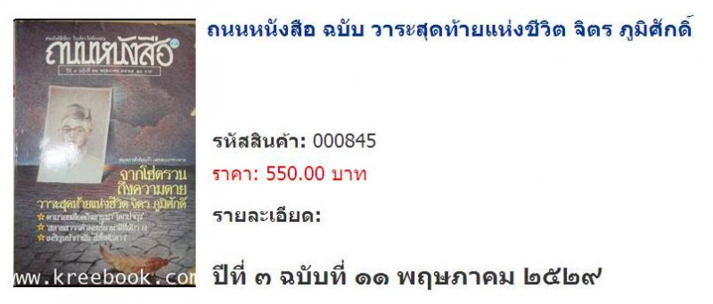 จากโซ่ตรวนถึงความตาย วาระสุดท้ายแห่งชีวิต จิตร ภูมิศักดิ์  ของ สุจริต  สัจจพิจารณ์ ที่เผยแพร่ครั้งนี้คัดมาจากนิตยสาร "ถนนหนังสือ" ปีที่ ๓ ฉบับที่ ๑๑ พฤษภาคม ๒๕๒๙ (ราคา ๒๐ บาท ส่งแบ๊งค์สีเขียว ใบเดียวไม่ต้องถอน)