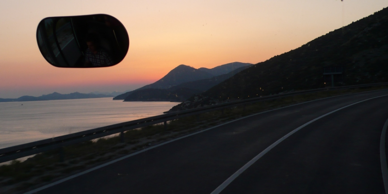 นั่งรถแล่นเลียบขอบผาชายทะเลตามเส้นทางเดิมที่เริ่มคุ้นเคย แต่คราวนี้เป็นยามย่ำสนธยา อาทิตย์ลับลาแต่ยังฝากแสงสุดท้ายป้ายขอบฟ้าด้วยสีเหลืองแดง