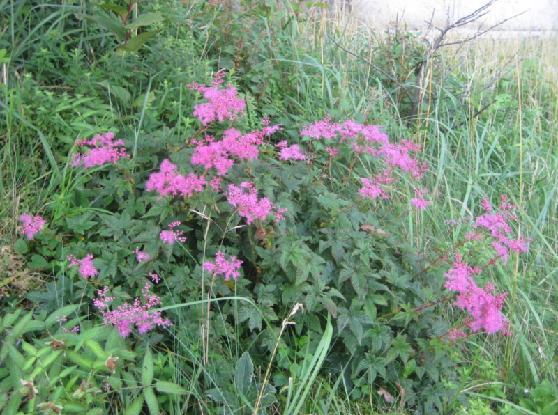เมื่อวานเจอต้นไม้ดอกสีชมพูต้นเล็ก ๆ ขึ้นระดับต้นหญ้ากระจายอยู่บนไหล่ภูเขา (ไฟ) Komagatake ที่ Hakone แต่คงไม่ถึงกับเรียกว่า "ทุ่ง" ได้ (ไม่ได้ปีนเขาขึ้นไปดูดอก ที่นี่มีกระเช้าไฟฟ้า-ropeway ให้บริการขึ้นไปบนยอดเขา) คนญี่ปุ่นที่นั่นบอกว่าชื่อดอก "Hakone Shimotsuke sou" ส่องอินทรเนตรแล้วได้ความว่าคือ Filipendula auriculata หรืออีกชื่อหนึ่งคือ Koshiji Shimotsuke sou