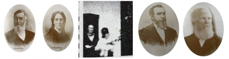 มาดูเสื้อผ้ามิชชันนารีอเมริกันบ้างค่ะ ซ้ายคือหมอสติเฟน แมททูนกับภรรยา หรือคนไทยเรียกว่าหมอมะตูน ส่วนขวาก็เป็นมิชชันนารีอเมริกันอีก 2 คน สังเกตเสื้อผ้าเหมือนกันไหมคะ