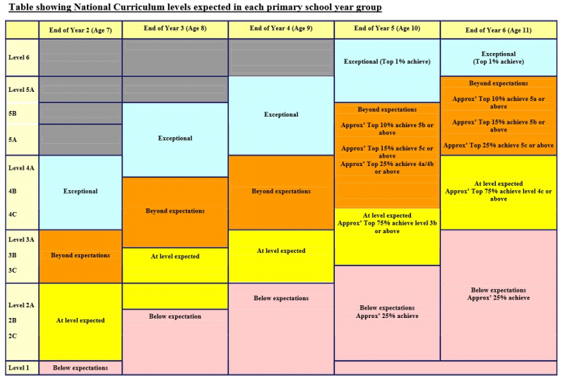 อย่างเด็กชายที่ผมสวมรอยไปเป็นผู้ปกครองด้วยคนนี้ อยู่ ป 4 เพิ่งเปิดเทอมขึ้น ป 4 เมื่อต้นเดือนกันยานี้เอง เมื่อเริ่มต้นเทอมครูจะมีผลการเรียนจากปีก่อนว่าอยู่ในระดับใด และเกณฑ์ที่ควรจะเป็นเมื่อจบ ป 4 คือระดับใด อย่าง ป 4 นี่ มาตรฐานของโรงเรียนคือเด็กทุกคนเมื่อจบแล้วควรอยู่ในระดับ 3B ทั้งอ่าน เขียน และเลข เป็นอย่างน้อย ซึ่งเป็นเกณฑ์เฉลี่ยของประเทศอังกฤษ แต่นายเด็กคนนี้พอขึ้น ป 4 ก็อยู่ระดับ 3B อยู่แล้ว ครูจึงตั้งเป้าไว้ว่าเมื่อจบ ป 4 ควรจะอยู่ที่ระดับ 4C ซึ่งถือว่าสูงกว่าค่าเฉลี่ย ก็นับว่าไม่เลวเมื่อพิจารณาว่าหมอนี่ได้ใช้ภาษาอังกฤษเฉพาะที่โรงเรียน ผู้ปกครองที่บ้านจ้อกันแต่ภาษาไทย และมีทักษะการใช้ภาษาอังกฤษย่ำแย่กว่าตัวเล็กมาก