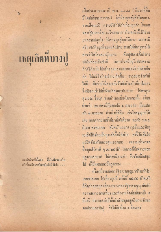 จากกระทู้เก็บตกจากตู้หนังสือใน "คลับไร้สังกัด" หัวข้อกระทู้ "เก็บตกจากตู้หนังสือ" ผมเก็บบทความที่คุณลุงฯ สแกนจากหนังสือ "ชาวกรุง" มาให้อ่าน ผมจำเลขกระทู้ไม่ได้ จึงขอนำเฉพาะหน้าแรกมาให้ชมก่อน เป็นบทความของคุณวริน อมาตยกุล เป็นเหตุการณ์ที่บางปูเมื่อวันที่ ๘ ธนวาคม ๒๔๘๔ วันที่ญี่ปุ่นยกพลขึ้นบกเข้าสู่ประเทศไทย