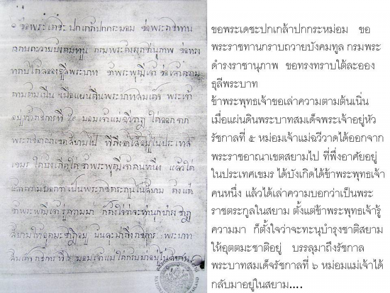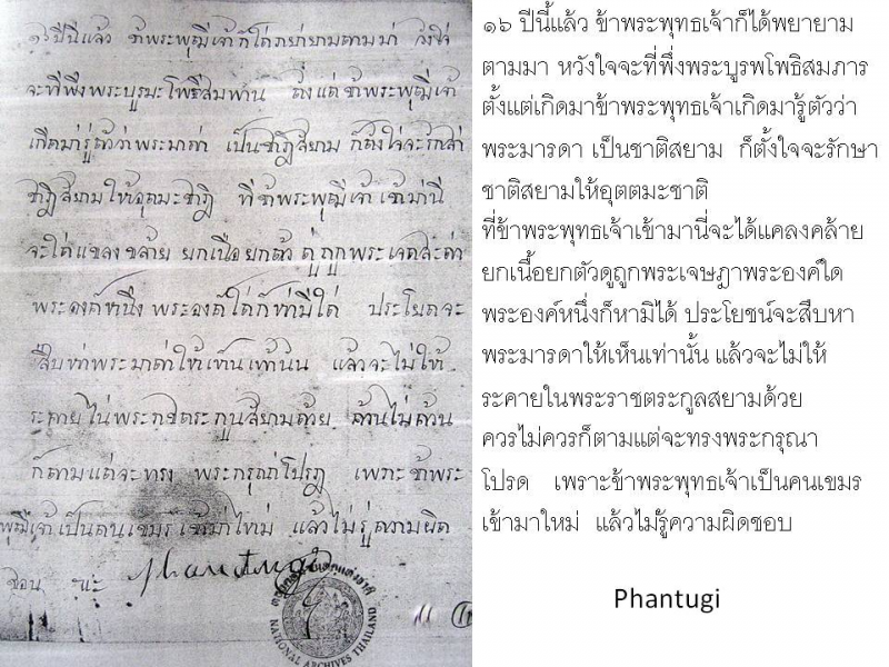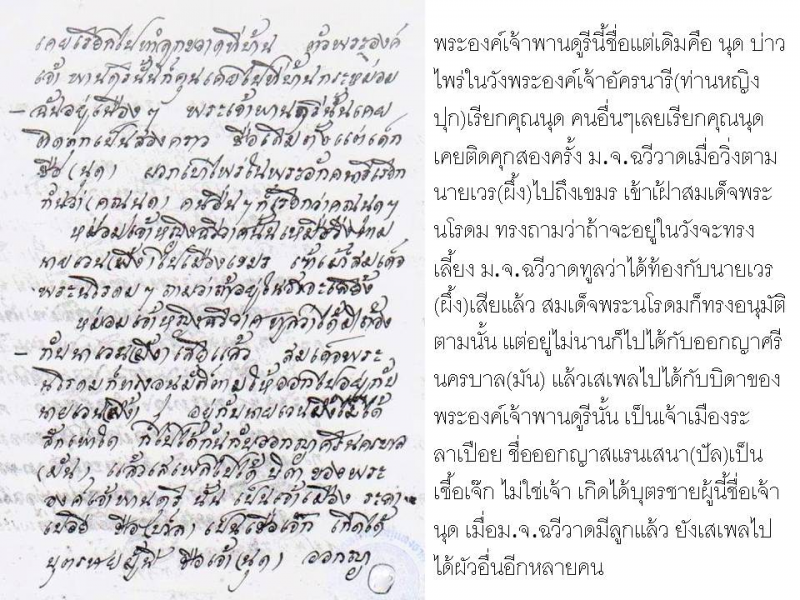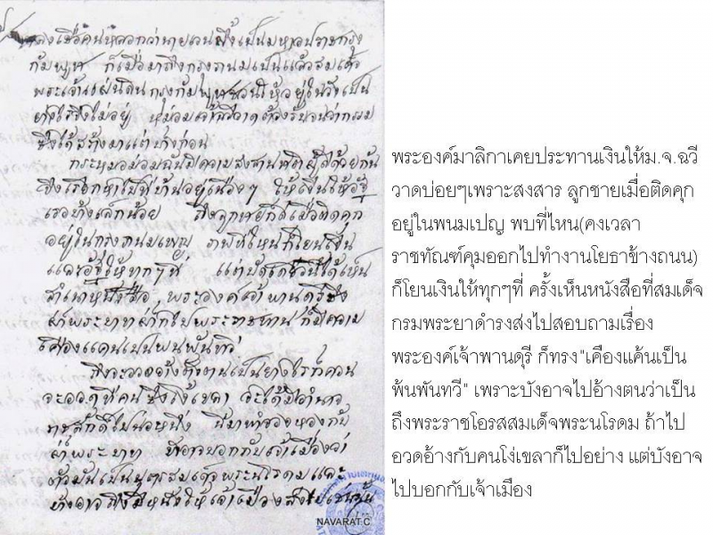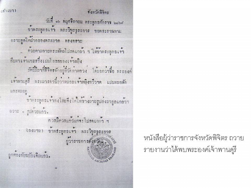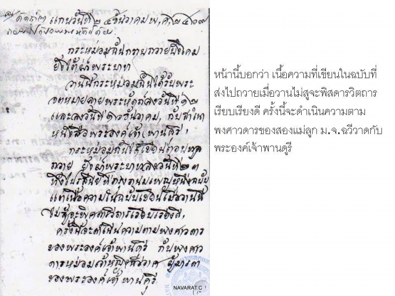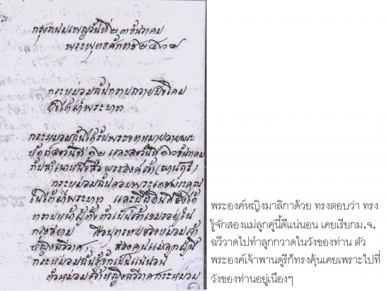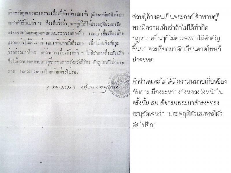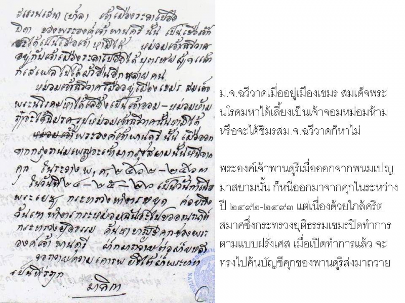 และได้แนบหนังสือที่ พระองค์เจ้าพานดุรี ได้ทำขึ้นกราบทูลมาด้วยดังนี้