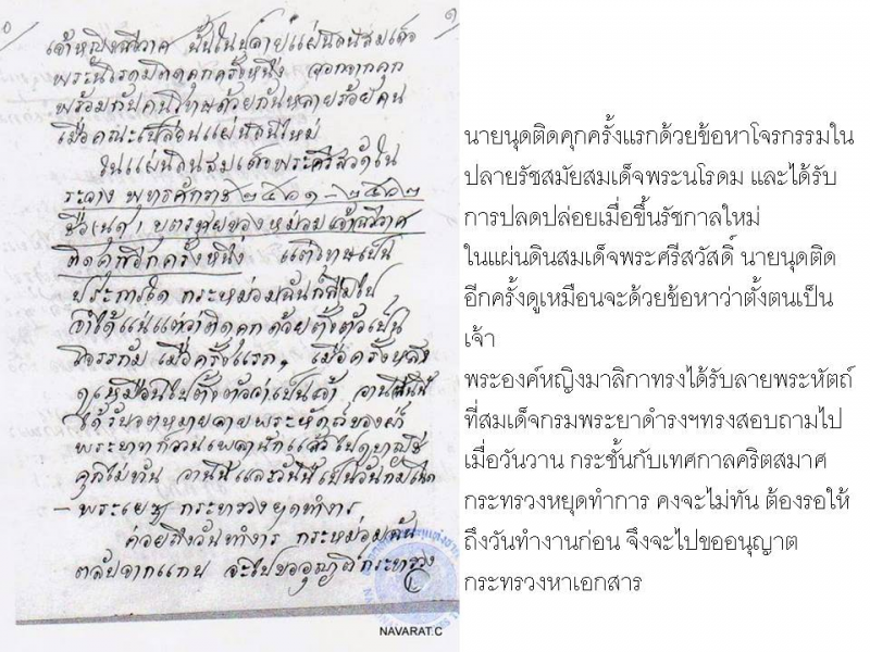 ถ้าเสด็จไปโดยวิธีอื่นแล้วคงไม่แคล้วพระราชอาญา พ่อแม่คงต้องโทษเหมือนคดีท่านหญิงฉวีวาดนั่นแหละ