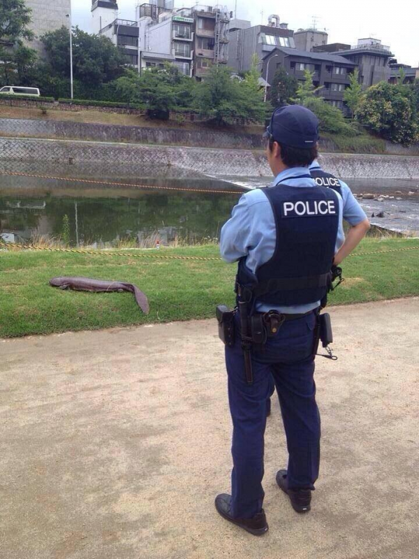 ส่วนที่คลานดุ๊กดิ๊กอยู่นี้เป็นซาลามานเดอร์ยักษ์ญี่ปุ่น Andrias japonicus ผู้อ่านข่าวข้างบนรายงานผิด เจ้าตัวนี้พบที่เกียวโต ไม่ใช่โตเกียว