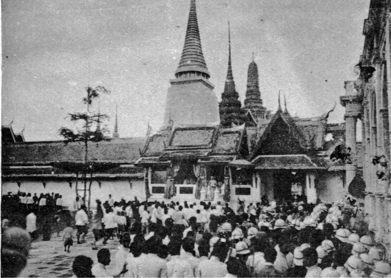 สมเด็จพระบรมโอรสาธิราชฯ ประทับพระราชยานงา และสมเด็จพระเจ้าลูกยาเธอ เจ้าฟ้าฯ กรมขุนสงขลานครินทร์ ประทับพระราชยานยูกสี่ เสด็จโดยกระบวนพระอิสริยยศจากพระที่นั่งอมรินทรวินิจฉัยไปประทับเกยหลังวัดพระศรีรัตนศาสดาราม