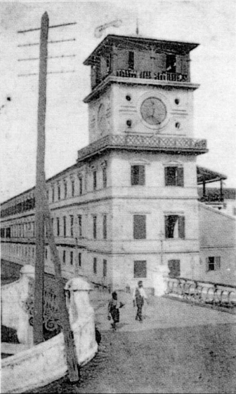 สะพานช้างโรงสี เห็นหอสูงของกระทรวงกลาโหมที่ใช้ถ่ายรูปถนนบำรุงเมือง