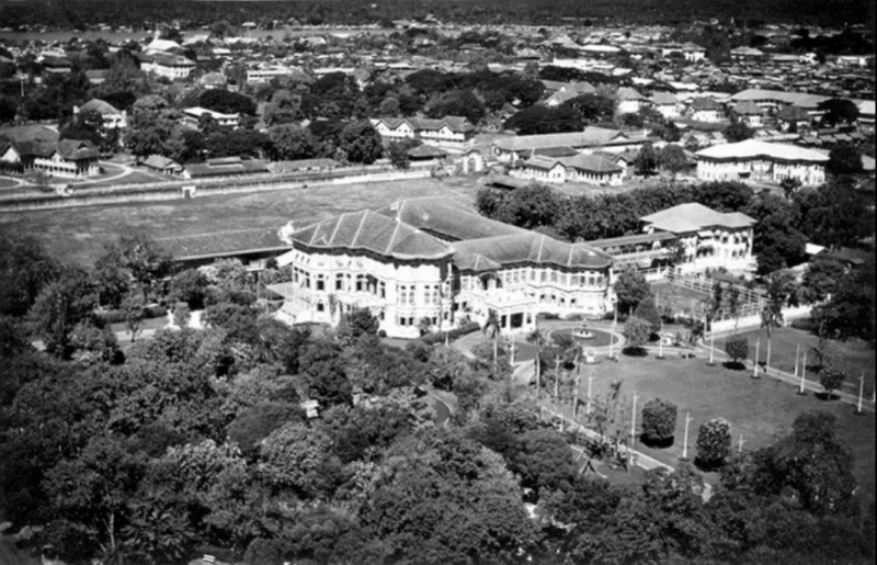 รูปล่างถ่ายทางอากาศของวิลเลี่ยม ฮันท์ พศ ๒๔๘๙ สะพานช้างโรงสีเปลี่ยนไปจากเดิม