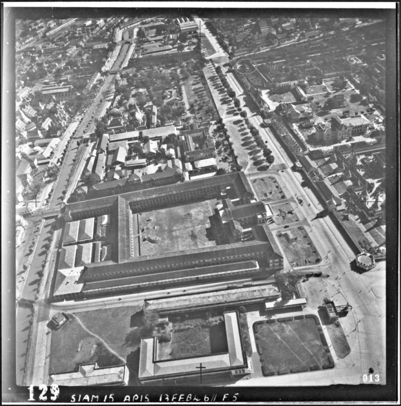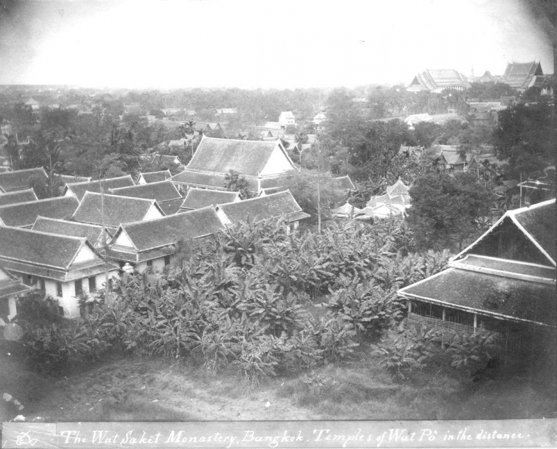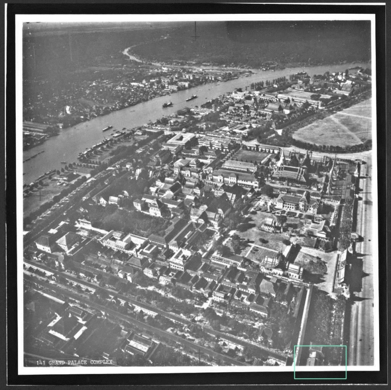 สงสัยมุมนี้ซิครับ ตรงตำแหน่งที่ปัจจุบันเป็นวัดปรินายก ในภาพแสดงว่าเดิมก็เป็นวัดอยู่แล้ว โดยมีอาคารยอดแหลม ดูไม่ออกว่าเป็นมณฑปหรือเมรุเผาศพ ซึ่งว่ากันว่ามีทางทิศนี้มีแต่ที่วัดสระเกศเท่านั้นที่คนกรุงใช้เป็นสถานที่ปลงศพ