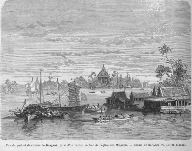 ภาพแรกจาก Voyage dans les royaumes de Siam, de Cambodge, de Laos et autres parties centrales de l'Indo-Chine, 1858-1861 ภาพที่สองจาก Bangkok ของ Lucien Fournereau